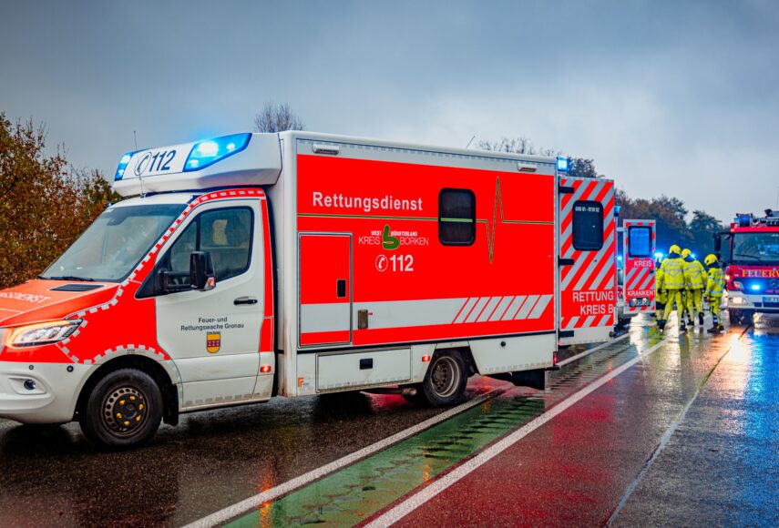 Zu einem Verkehrsunfall auf der B54 in Fahrtrichtung Niederlande wurde die Feuerwehr Gronau heute, am 01.11.2025, gegen 13:30 Uhr alarmiert. Zwischen den Anschlussstellen Eper Straße und Baumwollstraße war ein Fahrzeug aus bisher ungeklärter Ursache auf ein weiteres in gleicher Fahrtrichtung fahrendes Fahrzeug aufgefahren. Das vorausfahrende Fahrzeug landete dabei im Graben, der Fahrer wurde verletzt eingeschlossen. Die Feuerwehr befreite den verletzten…