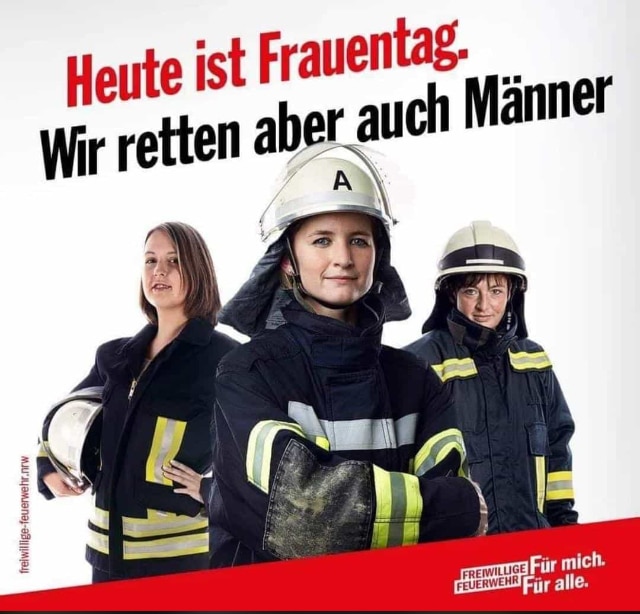„Zum Weltfrauentag erinnern wir daran: Frauen in der Feuerwehr sind nicht ,extra‘ oder ,besonders‘, sondern einfach ein ganz normaler Teil der Feuerwehren. Wer uns nicht auf dem Schirm hat, hat Feuerwehr nicht verstanden.“