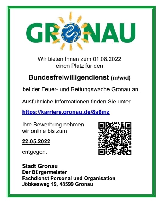 Die Stadt Gronau (Westf.) bietet zum 01.08.2022 einen Platz für den