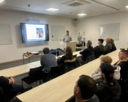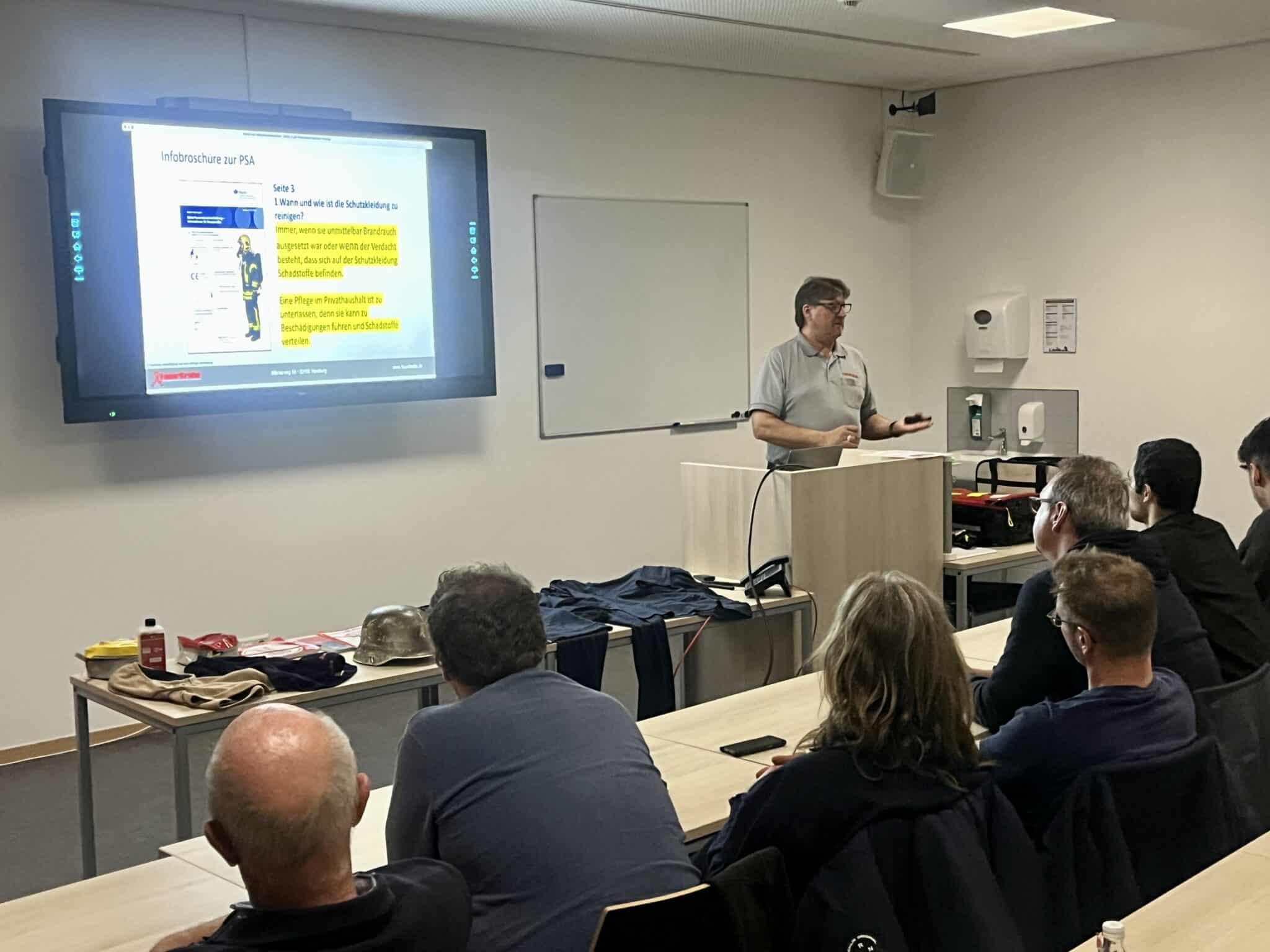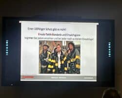 Über die Arbeit und den Fortschritt in diese Richtung klärte Marcus Bätge umfassend auf. Die Prävention im täglichen Einsatzgeschehen, auch am Beispiel anhand der Feuerwache Gronau, die durch den Neubau bereits gute Voraussetzungen in Punkto Hygiene mitbringt, wurde in gemeinschaftlicher Runde erörtert.