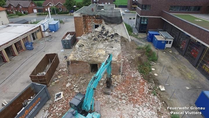 Jetzt ist aber für jeden deutlich sichtbar, dass der Abbruch der 1967 gebauten und 1986 erweiterten Feuer- und Rettungswache, in vollem Umfang erfolgt. Natürlich hängen bei vielen Feuerwehrleuten Geschichten, Gedanken und Erinnerungen an das Gebäude, dass jahrzehntelang die Heimat der Gronauer Feuerwehrleute war. Wenn alles planmäßig verläuft, soll der zweite Bauabschnitt im Herbst 2021 fertig gestellt sein.
