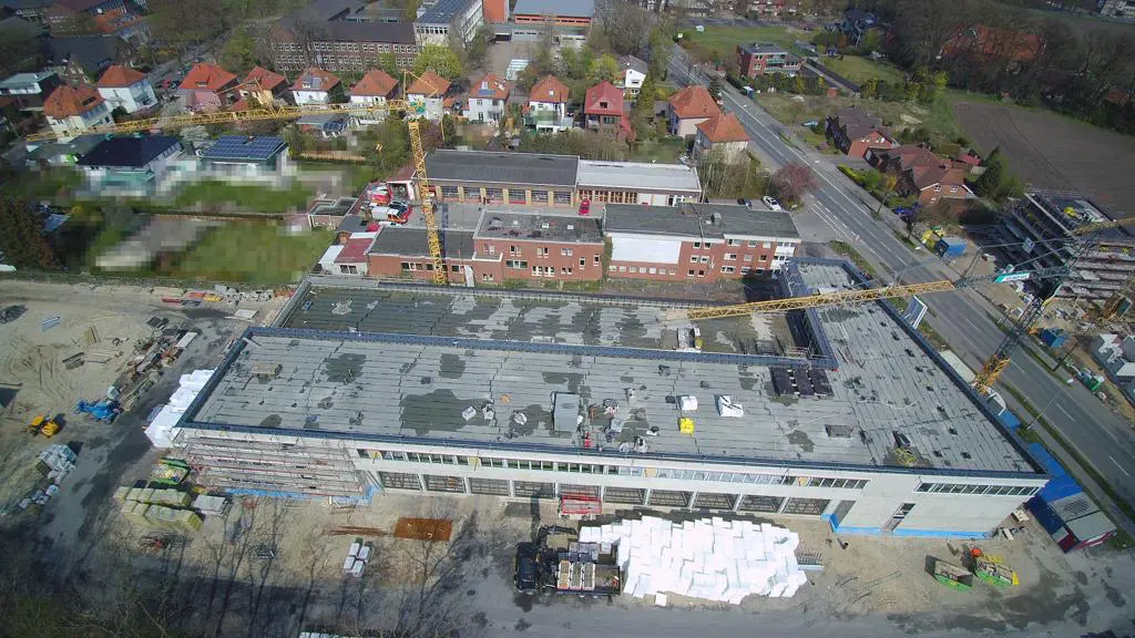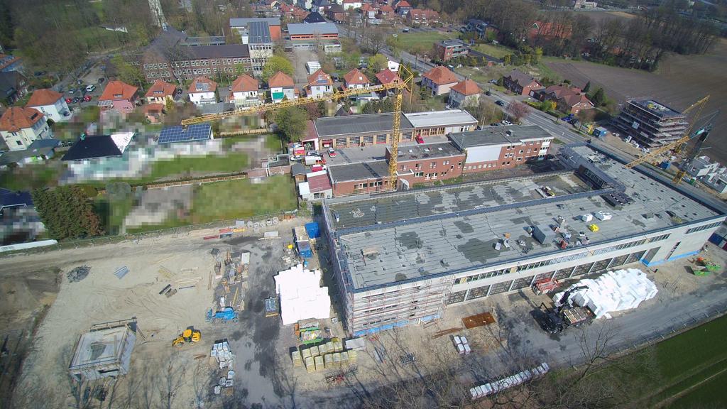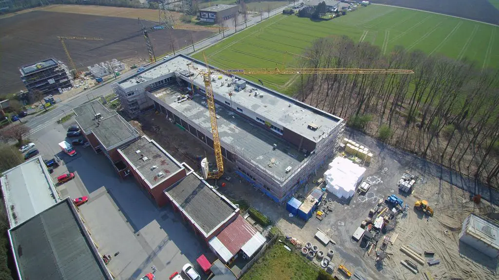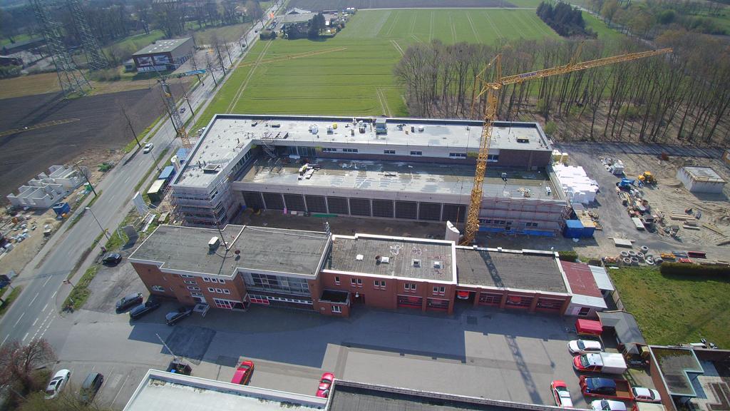 Aktuelle Fotos mit der Drohne vom Neubau der FRW Von: Martin Bültmann 9. April 2019 (bü) Der Neubau der Feuer- und Rettungswache Gronau wächst und wie man sehen kann wird an allen Ecken und Kanten an der Fertigstellung des ersten Bauabschnitts gearbeitet. Fotos: Feuerwehr Gronau (Nils Stockhorst)