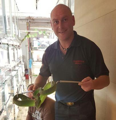 Bei der Berufsfeuerwehr in Düsseldorf hatte er 2006 im Einsatz erstmals mit einer Schlange zu tun. „Ein rund sieben Meter langer Python“, erinnert sich Lammers. Er begleitete damals den Kollegen und anerkannten Schlangenspezialisten Michael Harzbecker , in den Medien auch „Schlangenfänger von Düsseldorf“ genannt. Harzbecker leitet den Reptiliendienst der Düsseldorfer Wehr, der einzigen bundesweit.