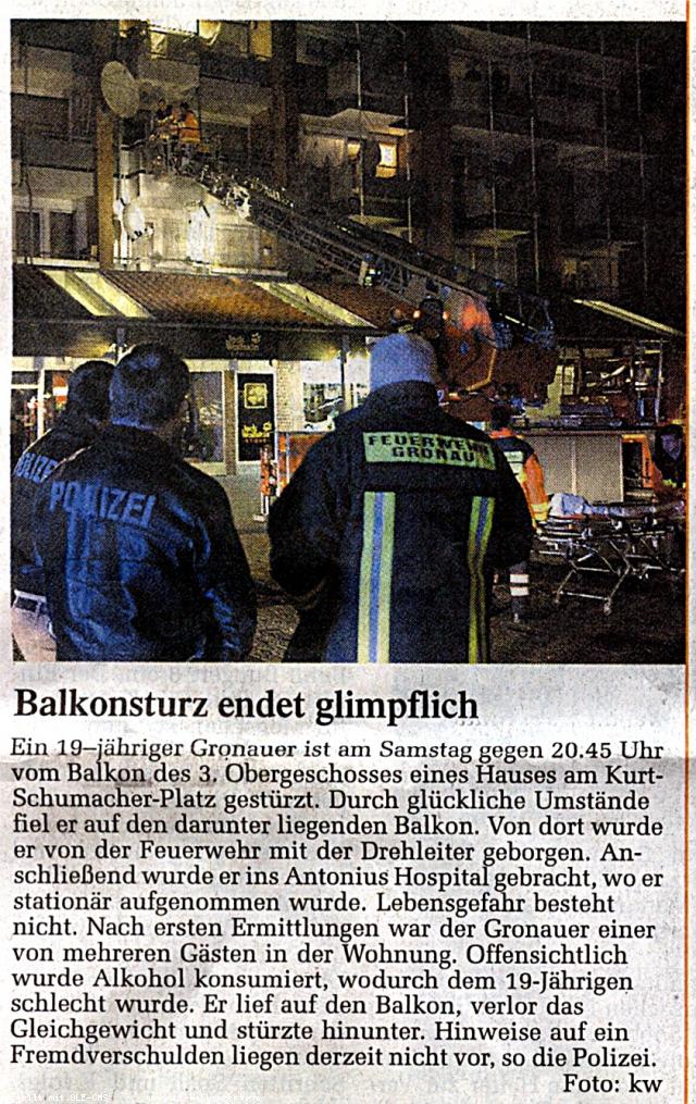 Balkonsturz endet glimpflich