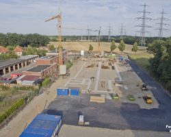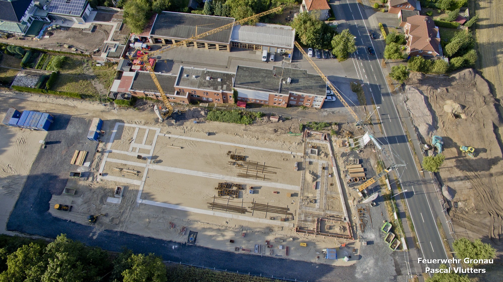 Nachdem die vorbereitenden Bodenarbeiten im Juni abgeschlossen waren, sind Anfang Juli die Bauarbeiten am Bauteil 1 der neuen Feuer- und Rettungswache gestartet.