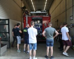 Aufenthaltsräume, Büros, Schulungsräume, Fahrzeughallen, Sporthalle und Sportraum, Werkstätten für Funk und Technik, Atemschutzwerkstatt, Umkleideräume, sportives Außengelände und natürlich die Fahrzeuge wurden explizit erläutert.