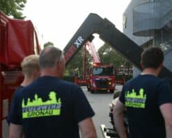 Im Anschluss der Besichtigung hatten alle noch einmal die Möglichkeit, mit dem neuen Hoogwerker, in einer Höhe von 40 Metern auf Enschede zu schauen.