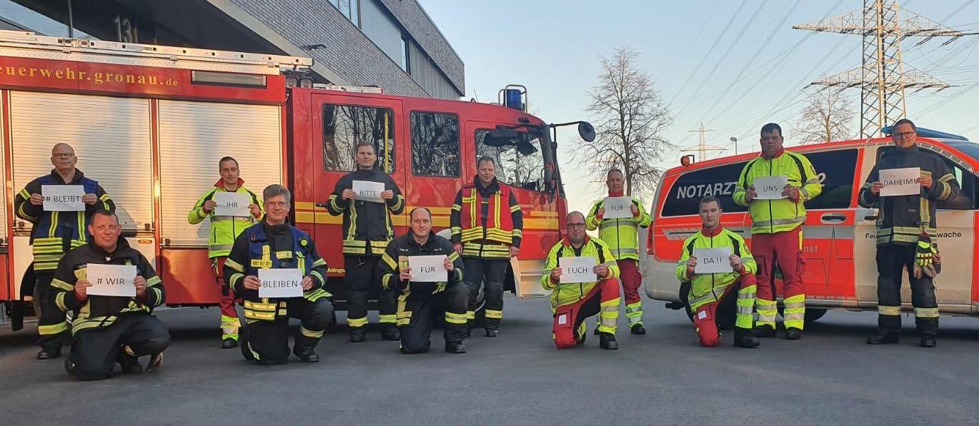 Bleibt Ihr bitte für uns daheim – Wir bleiben für Euch da !! Von: Martin Bültmann 25. März 2020 (bü) Die Corona-Krise verändert das gesellschaftliche Leben komplett. Deshalb noch Mal der Aufruf: Bleibt Ihr bitte für uns daheim – Wir bleiben für Euch da !! Foto: © Feuerwehr Gronau