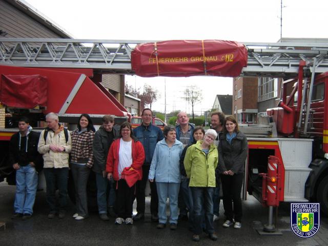 Eine Behindertengruppe aus Gescher (Haus Hall) besuchte mit den Betreuern die Feuer- u. Rettungswache Gronau. Günter Setzpfand und Martin Bültmann zeigten den Anwesenden, wie man sich bei einem Brand verhält. Auch konnten einige Teilnehmer selbstständig den Notruf absetzen. Der Besuch wurde mit der Besichtigung der Fahrzeuge abgerundet.