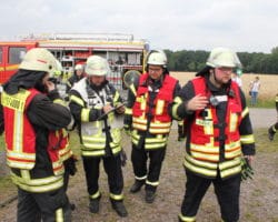 Bürgermeisterin Jürgens und ihre Kollegen ließen es sich nicht nehmen, den Feuerwehrleuten für ihren Einsatz bei dieser Übung zu danken. Das große Engagement und das ständige Üben fördert die Kameradschaft der drei Feuerwehren. Und es ist gut zu wissen, dass Nachbarn sich aufeinander verlassen können, gerade in Notlagen, so der Tenor der Bürgermeister. Der Tag klang bei gemütlichen Beisammensein am Grill aus.