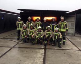 (bü) Am heutigen Donnerstag (09.03.17) übte die erste von vier Ahauser Feuerwehrgruppen die Realbrandausbildung. Unter der Leitung der Gronauer Ausbilder wurde die richtige Taktik beim Vorgehen sowie der optimale Einsatz des Strahlrohres im Container geübt. Alle Teilnehmer waren sich einig, der Wert einer solchen Übung wird sich in zukünftigen Einsatzsituationen bezahlt machen. Fotos: Feuerwehr Ahaus