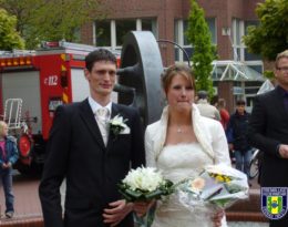 Christina und Bastian Schatz gaben sich in der Evangel.Stadtkirche in Gronau das Ja-Wort. Der Löschzug Gronau ließ es sich nicht nehmen dem Brautpaar als erstes zu Gratulieren. Wie immer zu solchen Anlässen standen die Kameraden Spalier.