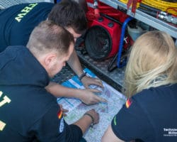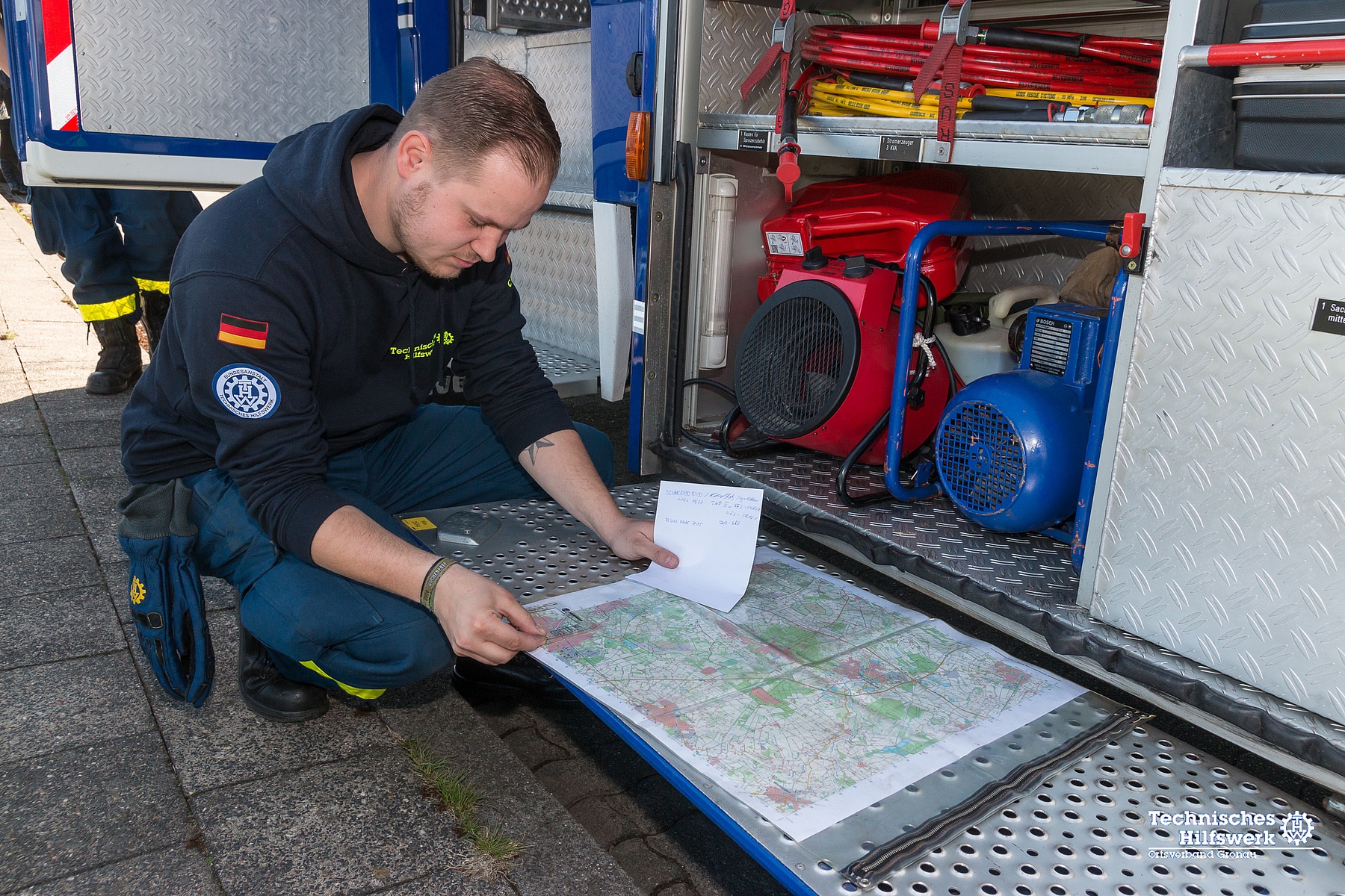 Die Gronauer THWler mussten in Gronau und Epe anhand von „UTM“-Karten, wie sie auch von anderen BOS-Organisationen oder der Bundeswehr benutzt werden, per Funk vorgegebene Koordinaten anfahren und dort Aufgaben lösen. Von den beiden Feuerwehr-Ausbildern und dem THW-Zugführer Torsten Lammers wurden sie ständig mit Funksprüchen bedacht, so dass jedem Helfer die Eigenheiten des Sprechens am Funkgerät in Fleisch und Blut übergingen. Nebenbei wurden die Kenntnisse in Sachen Kartenkunde wieder aufgefrischt.