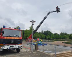 Alle Drehleitermaschinisten sollen jetzt in kleinen Gruppen auf die neue Fahrzeug- und Sicherheitstechnik eingewiesen. Das Fahrverhalten des Fahrzeuges und des Leiterparks muss geübt werden und auch die Bedienung der Rettungseinrichtungen hat sich im Laufe der letzten Jahre erheblich geändert.