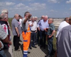 Nach einer kleinen Einführung zur historischen Geschichte ging es mit einem Geländebus in den Tagebau Inden, wo einer der gigantischen Schaufelradbagger aus nächster Nähe begutachtet werden konnte. Neben dem Abbau der Braunkohle wurde den Feuerwehrmännern viel über die Rekultivierungsmaßnahmen der RWE erklärt. Einige Ergebnisse der neuen Landschaftsgestaltung und der Aufforstung konnten sogar schon begutachtet werden.