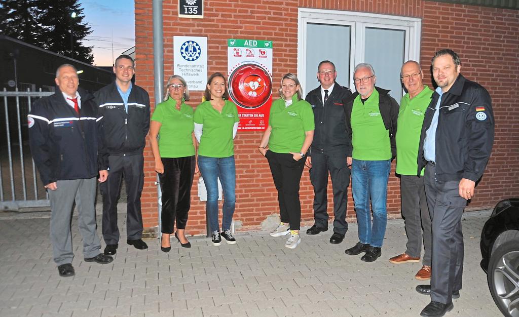 Symbolisch wurde am Donnerstagabend an der THW-Unterkunft (Vereinsstraße) ein Defibrillator, den das THW beschafft hat, im öffentlichen Raum in Dienst gestellt. Viele weitere sind für die Umsetzung des Projektes notwendig und machen es auch in finanzieller Hinsicht zu einer ehrgeizigen Maßnahme, denn: Jedes Gerät kostet mindestens 2500 Euro. Viel Geld – aber jeder Herzschlag, der damit wieder ausgelöst werden kann, ist es wert.