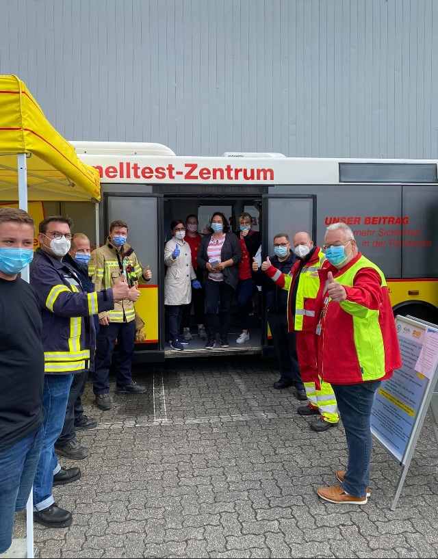 Schnell war mit dem ASB e.V. Münster ein Partner gefunden, der das passende Equipment hat und auch zur Verfügung stellen konnte. Als praktizierender Mediziner konnte Dr. Woltering sein Praxisteam ebenfalls für die Idee gewinnen. Die Mitglieder der Feuerwehr Gronau waren auch sofort Feuer und Flamme um die Aktion zu unterstützen. Mit dieser Fülle an Material und Mannschaft war die Stadtverwaltung Gronau natürlich erfreut und sofort bereit, alle organisatorischen Maßnahmen einzuleiten.