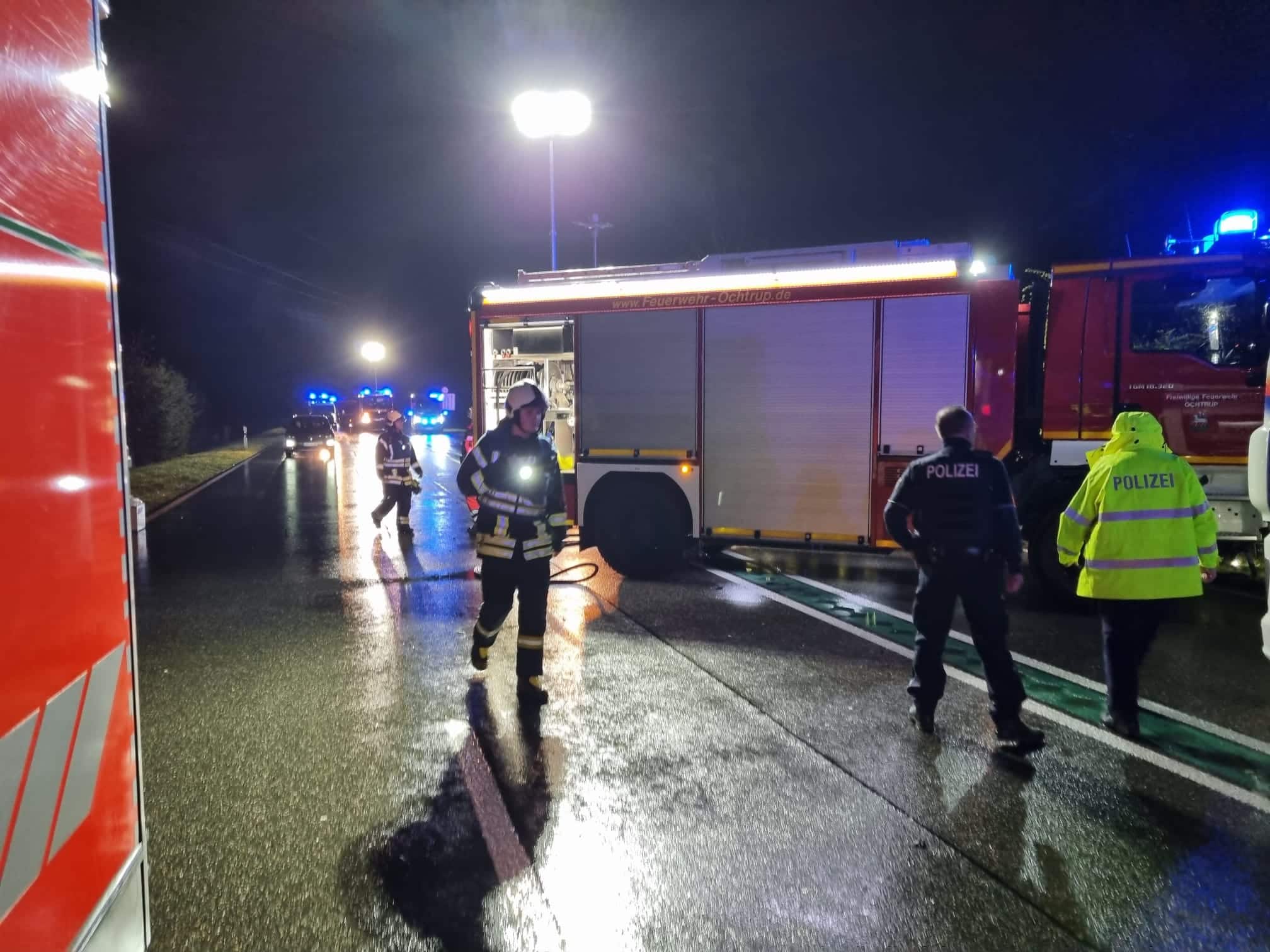 Am 21.04.2023 kam es auf der B54 auf an der Ortsgrenze Gronau/Ochtrup zu einem Verkehrsunfall mit 2 beteiligten PKW. Entgegen der Erstmeldung waren keine Personen in den PKW eingeklemmt. Dennoch gab es 6 Verletzte, darunter 1 Person schwer verletzt.