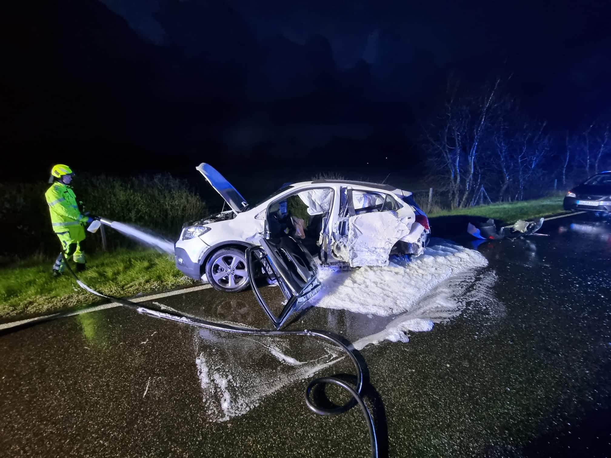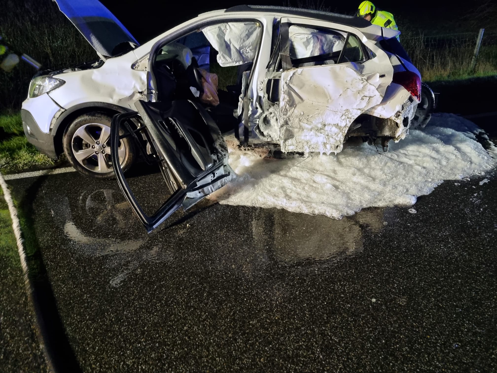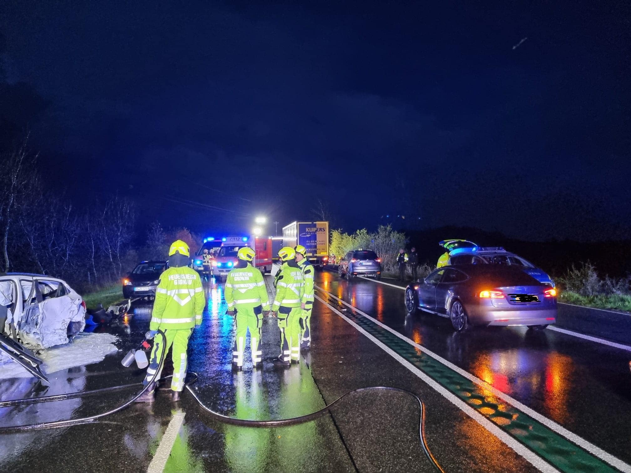 Die Feuerwehr Gronau unterstützte hierbei die zuerst eintreffende Feuerwehr Ochtrup und stellte den Brandschutz sicher. Auslaufende Betriebsmittel wurden mit Schaum überdeckt und die Batterien abgeklemmt.