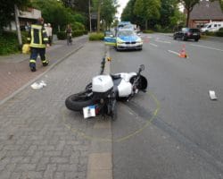 Auf der Gildehauser Straße, in Höhe Aral-Tankstelle, hatte sich ein Verkehrsunfall zwischen einem PKW und einem Motorrad ereignet. Die Feuerwehr Gronau beseitigte ausgelaufene Betriebsstoffe des Motorrades mittels Bindemittel.