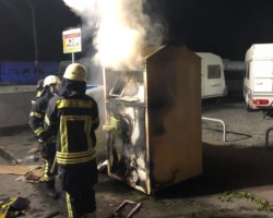 Der Brand eines Altkleidercontainers hat in der Nacht zum Mittwoch in Epe einen Sachschaden in Höhe von circa 1000 Euro verursacht. Ein Zeuge hatte gegen 2.45 Uhr bemerkt, dass Flammen aus dem Behälter an der Kreuzung Hauskamp/Klosterstraße schlugen. Kräfte der Feuerwehr Epe rückten daraufhin zum Löschen an. Sie zogen den Container auf, um an die stark brennenden Altkleider zu kommen. Polizeibeamte stellten im Umfeld zudem Anzeichen für Vandalismus fest: Unbekannte hatten Mülltonnen umgestoßen und Blumen ausgerissen. Wer die Ermittlungen der Kripo durch Hinweise unterstützen kann, sollte sich melden, 02562 9260.