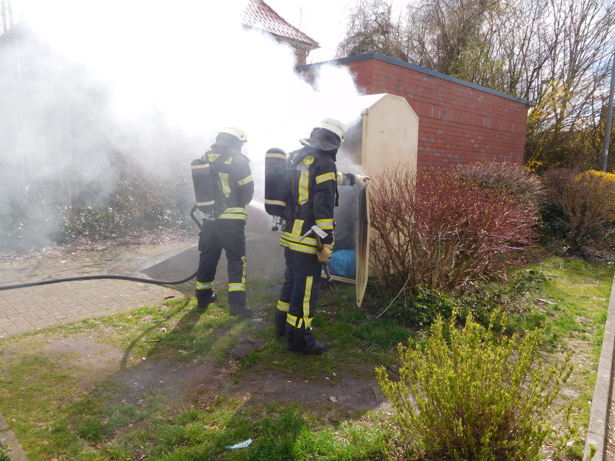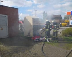 Die Feuerwehr Gronau wurde am 27.03.19 gegen 12:14 Uhr alarmiert. Auf der Grünstiege, Höhe K + K qualmte es aus einem Altkleidercontainer. Die Feuerwehr öffnete diesen Container und löschte den Brand mit einem C-Rohr unter Atemschutz.