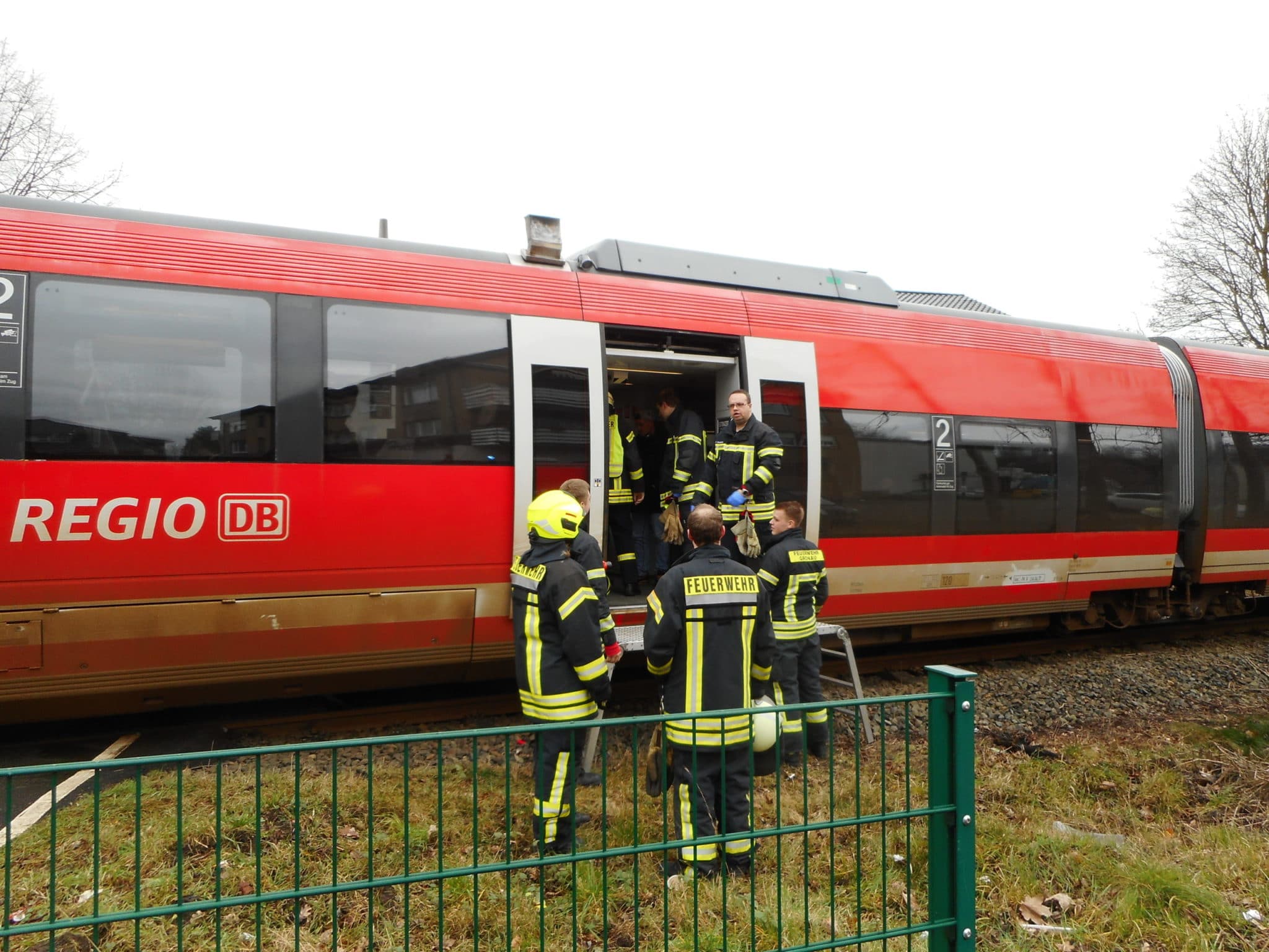 Um 12:25 h wurde die Feuerwehr Gronau mit dem Stichwort „P_klemmt“ alarmiert. Eine männliche Person war aus ungeklärter Ursache unter den Personenzug geraten. Der Rettungsdienst kümmerte sich um die schwer verletzte Person, die anschließend mit dem Rettungshubschrauber in eine Spezialklink geflogen wurde.