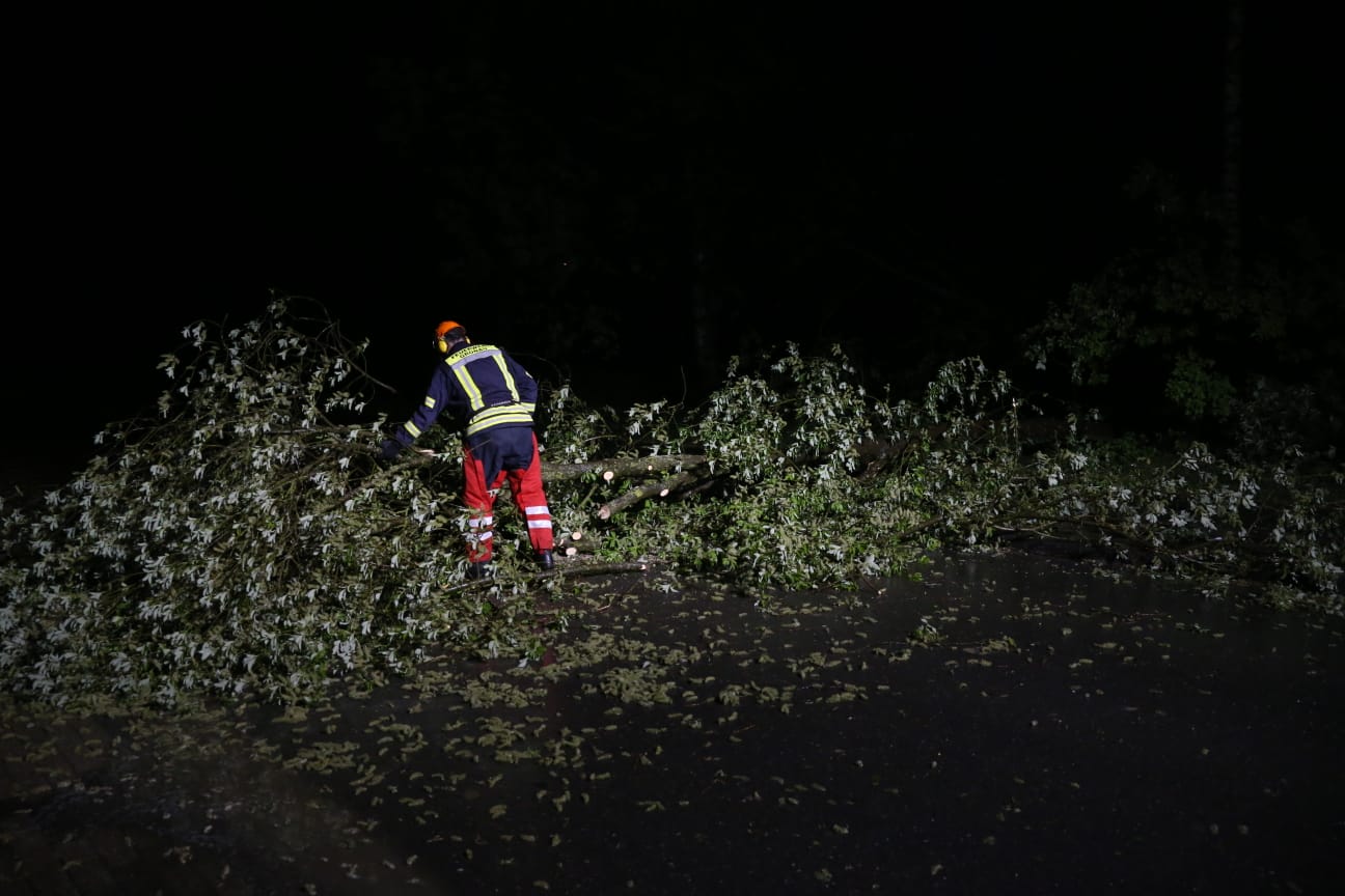 Das kurze Unwetter hat am heutigen Abend zu einem Einsatz geführt. Um 21:15 h fuhr das HLF zur Steinstraße, wo ein Baum auf der Strasse lag. Mittels Motorsäge wurde die Verkehrsstörung beseitigt.