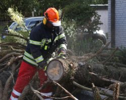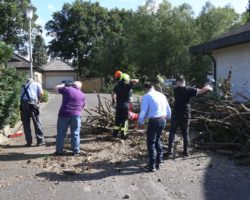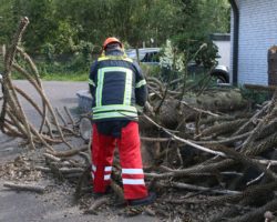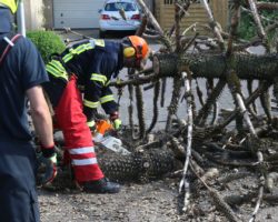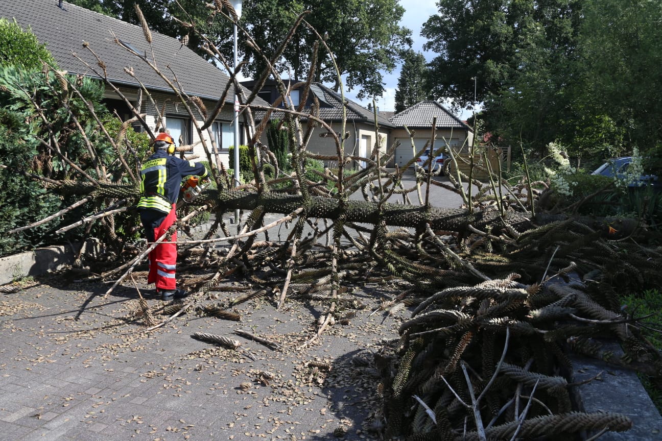 Mittels Motorsäge beseitigte die Feuerwehr den Schaden.