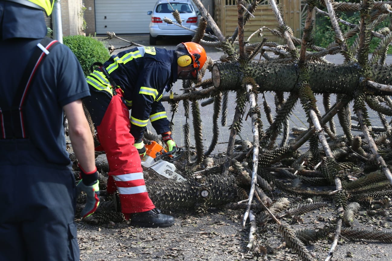 Mittels Motorsäge beseitigte die Feuerwehr den Schaden.