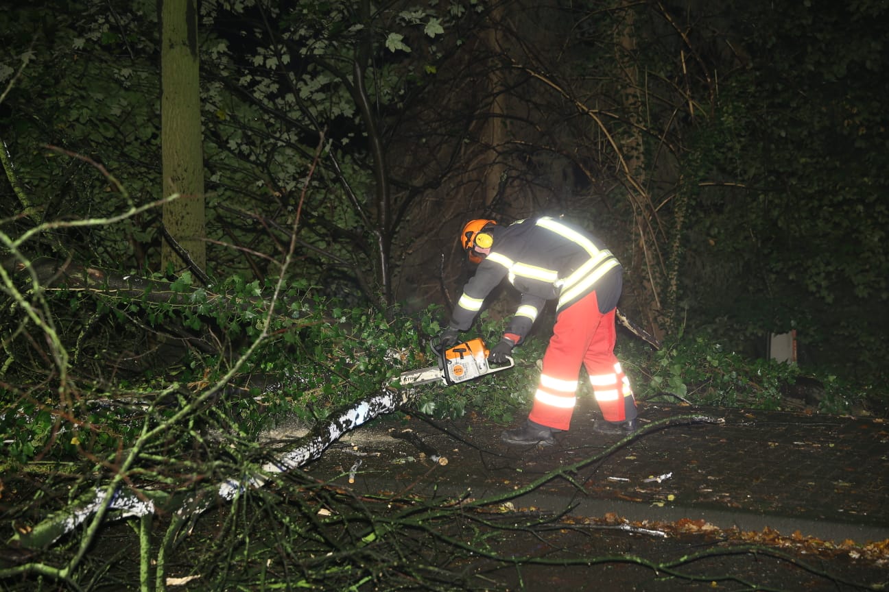 Eine ca. 30 cm dicke morsche Birke war auf der Laubstiege umgestürzt und versperrte die Fahrbahn. Mittels Motorsäge wurde der Baum zerkleinert und beiseite geräumt. Die Straße wurde gereinigt.