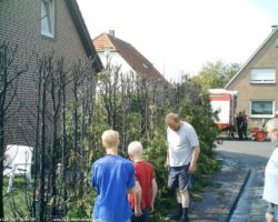 Beim vernichten von Unkraut mit einem Gasbrenner entzündete sich eine Koniferenhecke. Nach mißglückten Löschversuchen mit einem Gartenschlauch wurde die Feuerwehr zur Hilfe gerufen, die den Brand schnell löschen konnte.