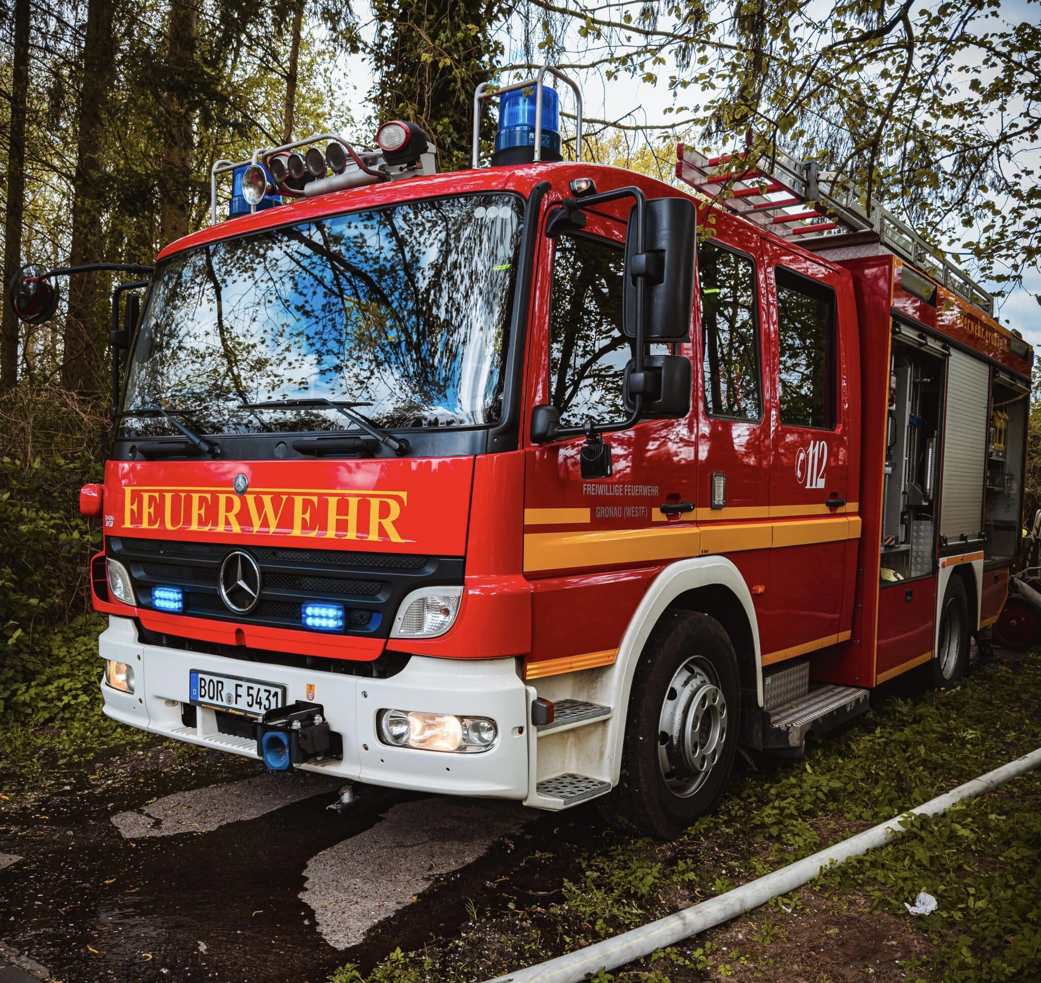 Die Feuerwehr Gronau wurde am Dienstag um 15:26 Uhr zum Amtsvennweg alarmiert. Vor Ort stellte sich heraus, dass unmittelbar an der Grenze zwischen den Niederlanden und Deutschland ein Container in voller Ausdehnung brannte. Der Zugang zur Brandstelle führte über niederländisches Gebiet, die Feuerwehr musste etwa 300 Meter Schlauchleitung zur Wasserversorgung legen.