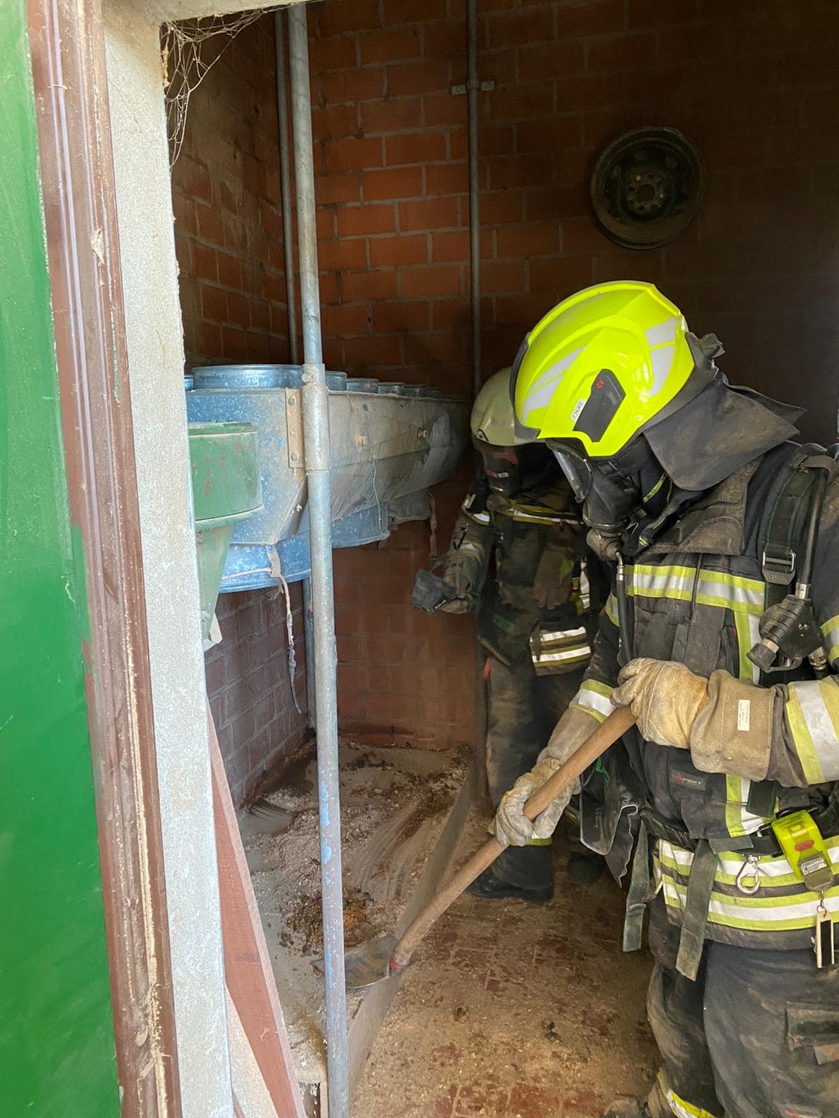 Bei Arbeiten in der Schreinerei wurde gegen 11:54 h ein Feuer in der Absauganlage festgestellt und die Feuerwehr alarmiert. Nach Eintreffen der Feuerwehr wurde festgestellt, das Rauch aus einem Nebenraum der Schreinerei quoll. Hier waren die Füllsäcke für die Absauganlage untergebracht. Der Angriffstrupp konnte schnell den Brandherd lokalisieren und einen Teil der Absauganlage sowie die Füllsäcke demontieren. Das Brandgut wurde anschließend ins Freie gebracht und abgelöscht. Die Werkstatt wurde mit der Wärmebildkamera kontrolliert und mittels Hochleistungslüfter belüftet.
