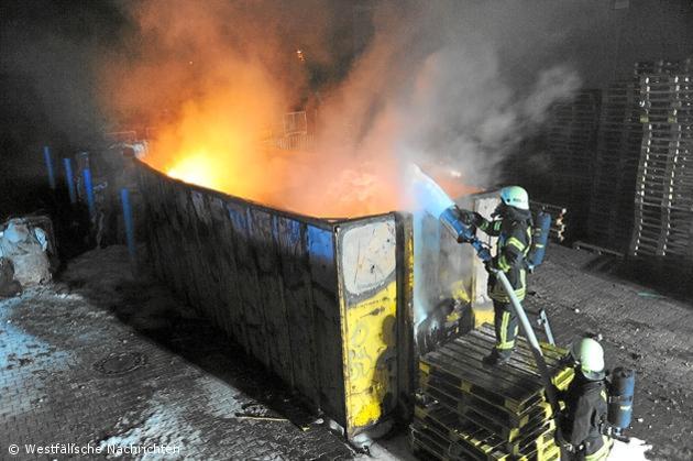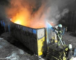 Zu einem brennenden Stoffrestcontainer auf der Düppelstraße wurde die Feuerwehr in den frühen Morgenstunden des 09. Mai 2013 gerufen. Gegen 02:30 Uhr alarmierten Mitarbeiter des textilverarbeitenden Betriebes die Feuerwehr. Ein Großcontainer mit Abfallstoffen war in Brand geraten. Mit einem Schaumrohr unter Atemschutz und über eine Steckleiter wurde das Feuer gelöscht.