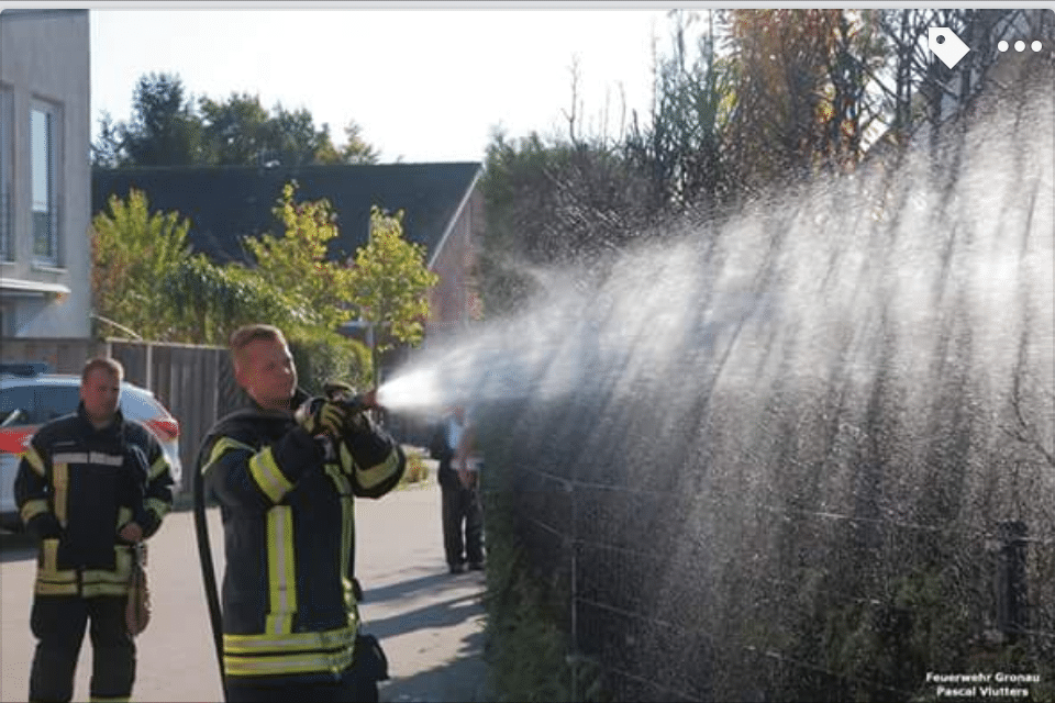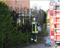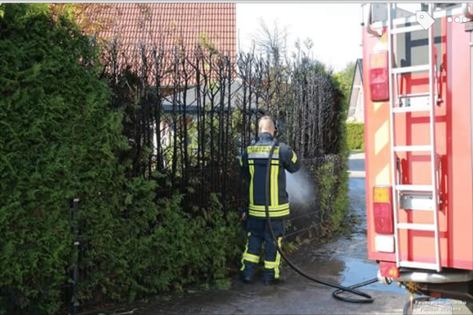 So auch am Sonntag gegen 12:13 h. Hier hatte am Euregioring eine Hecke von ca. 6 Metern Länge gebrannt. Die Feuerwehr löschte den Brand mit einem C-Rohr.