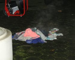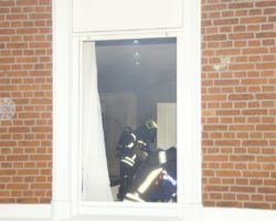 Ein Ethanolkamin, der an einer Wohnzimmerwand befestigt war, brannte. Vermutlich war eine Dose dieses Ethanols undicht und lief dann unbemerkt aus. Beim Entzünden der Foden brannte der ganze Kamin. Löschversuche vom Eigentümer mit einem Schaumlöscher schlugen fehl. Die Bewohner wurden dann in einen sicheren Teil der Wohnung verbracht. Der Angriffstrupp löschte den Brand unter Atemschutz mit einem CO-2-Löscher. Brennende Handtücher wurden ins Freie gebracht und mit dem Schnellangriff abgelöscht. Der Kamin wurde von der Feuerwehr abgebaut und ebenfalls ins Freie gebracht.