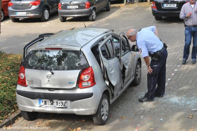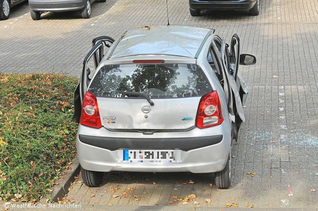 Die Explosion an dem Fahrzeug – ein Nissan Pixo – war so stark, dass im Umkreis von 30 Metern weitere geparkte Fahrzeuge beschädigt wurden. Am Fahrzeug des 35-Jährigen wurden alle Scheiben – bis auf die Heckscheibe – zerstört. Die Druckwelle sprengte die Türen auf und verformte sie.