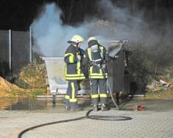 Als die Feuerwehr Gronau am 09.03.17 gegen 23:00 h zu einem Brand am Einsteinring alarmiert wurde, ging man von einem Großbrand aus. Vor Ort stellte sich schnell heraus, dass ein Abfallcontainer brannte. Durch den Einsatz eines C-Rohres wurde der Brand abgelöscht.