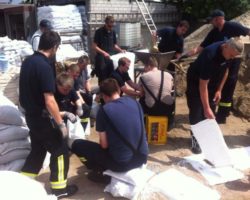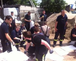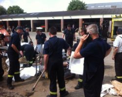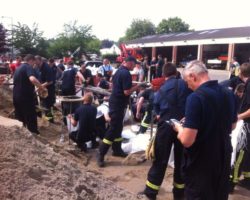 Aufgrund des Unwetters in der vergangenen Nacht sind die Feuerwehren des Kreises Borken im Dauereinsatz. Vor allem im Südkreis hat das Unwetter Keller voll laufen lassen. Im Bereich Isselburg droht die Issel über die Ufer zu treten und ein Gewerbegebiet zu überfluten. Hier ist ein Krisenstab gebildet worden. Die Feuerwehr Gronau, sowie weitere Feuerwehren aus dem Kreis Borken, die Feuerwehr Münster und Kräfte aus Wuppertal sind in Isselburg im Einsatz. Die Bezirksregierung hat im ersten Schritt 15.000 Sandsäcke angefordert, die beim Bauhof in Isselburg gefüllt werden. Aktuell bleiben die Kindengärten und Schulen in Isselburg vorsorglich geschlossen.