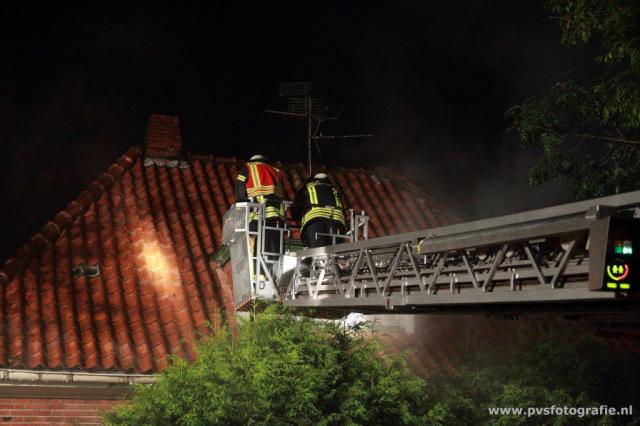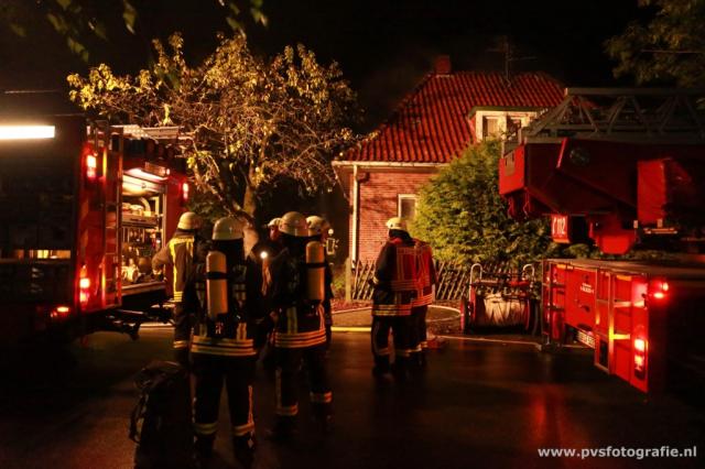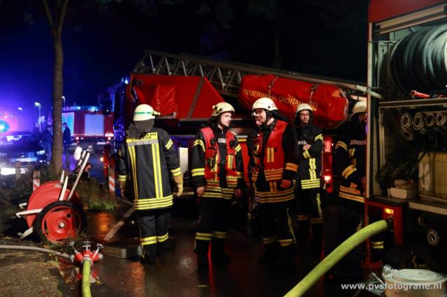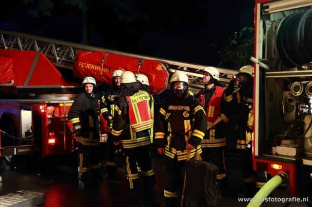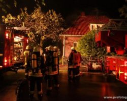 Eine weitere Einsatzstelle lag schräg gegenüber auf der anderen Straénseite. Hier brannte es in einem leerstehendem Wohnhaus. Auch dieser Brand wurde durch Einsatzkräfte unter PA abgelöscht.Mittels Wärmebildkamera und Drehleiter wurde das Haus nach Glutnestern abgesucht.
