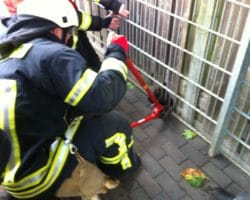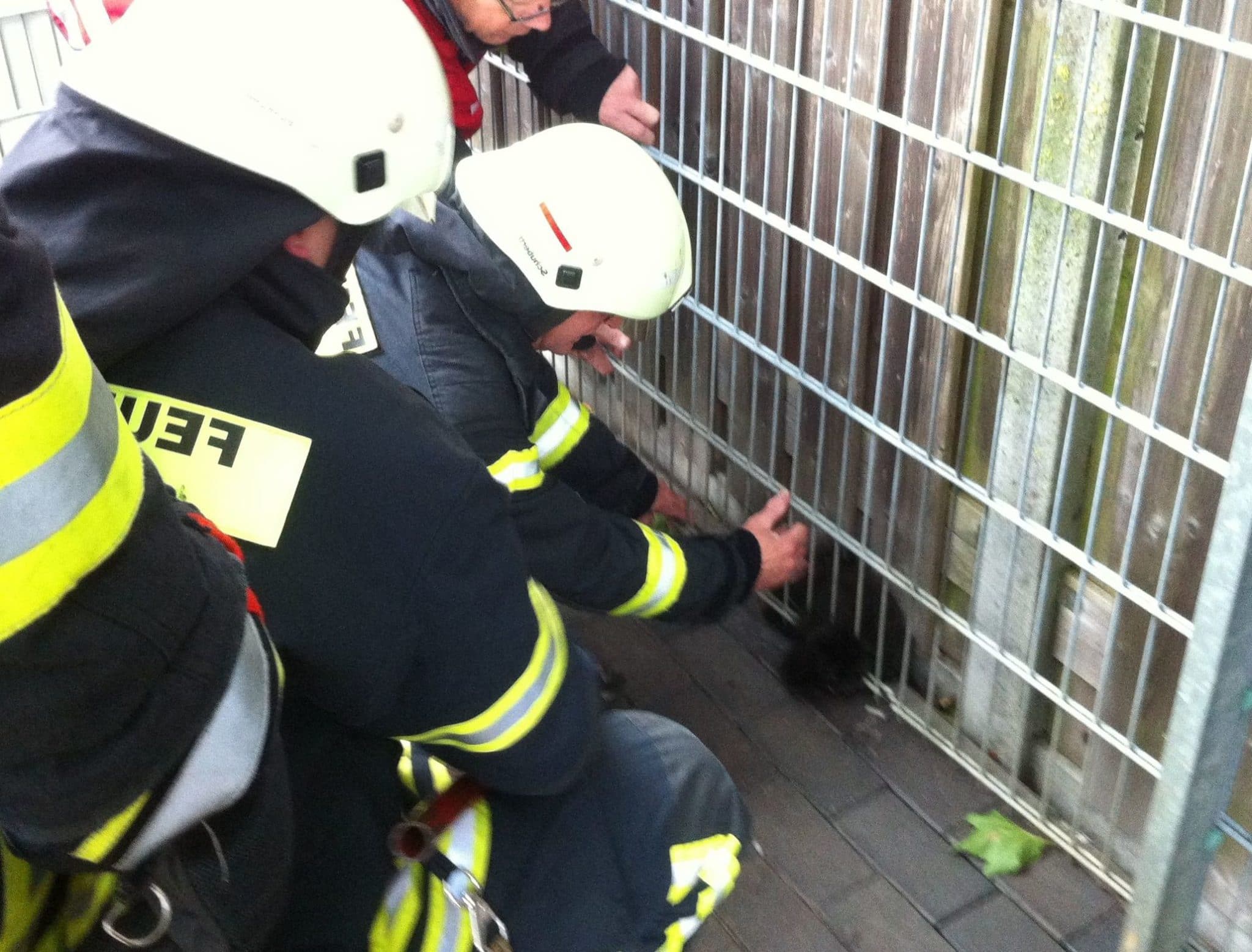 Als die Feuerwehr vor Ort war, sah es dem ersten Anschein nach einer Katze aus, die sich in einer Doppelstabmatte eingeklemmt hatte. Nachdem das Tier dann mit einer Bolzenzange befreit wurde, konnte man erkennen, dass es sich um eine bestimmte Rasse eines Huhn handelte. Das unverletzte Tier wurde anschließend auf dem Nachbargrundstück verbracht, wo sich weitere Artgenossen befanden.