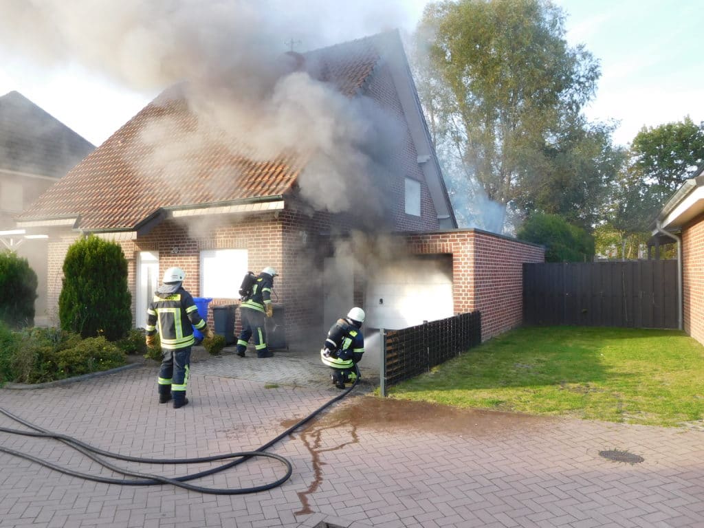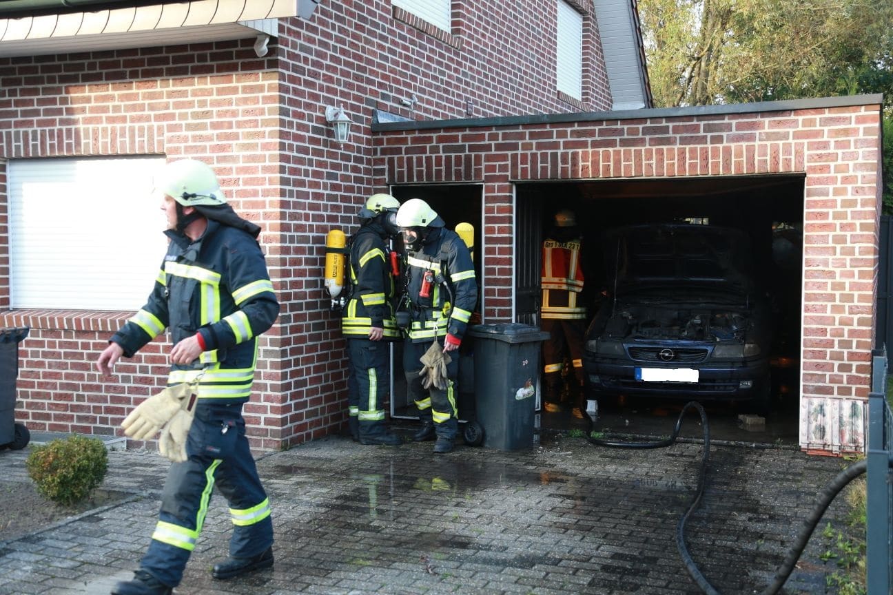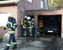 Um 16:37 h wurde die Feuerwehr Gronau zu einem Garagenbrand in der Goorstraße alarmiert. Vor Ort kam dichter schwarzer Qualm aus der am Einfamilienhaus angebauten Garage heraus. Der Eigentümer teilte der Feuerwehr mit, dass sich in der Garage neben dem PKW noch eine Acetylen- und eine Sauerstoffflasche befanden. Dementsprechend geschützt ging der Angriffstrupp vor. Die Löscharbeiten wurden unterbrochen, nachdem eine Flasche abblies.