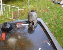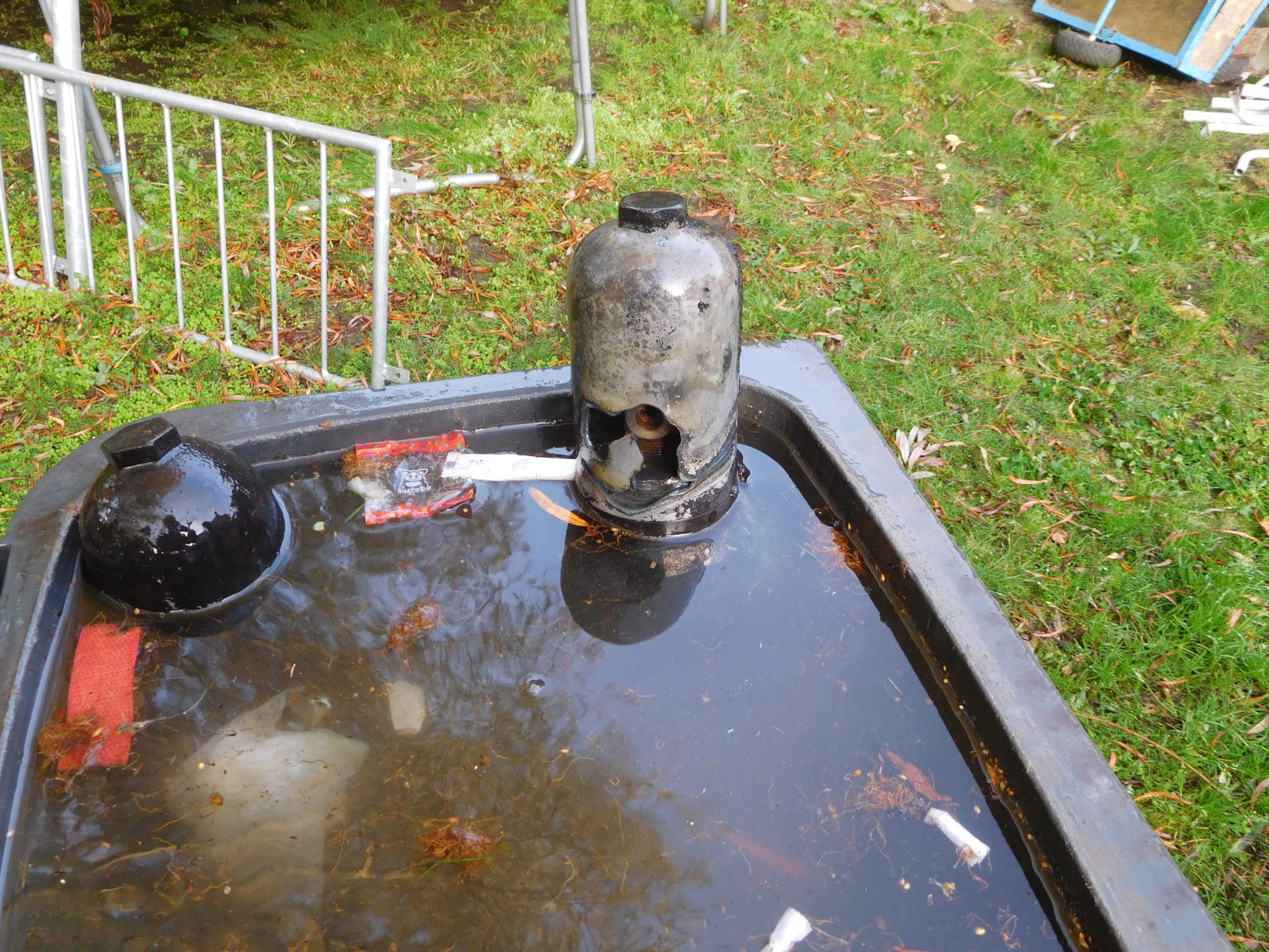 Als der Brand durch zwei C-Rohre gelöscht worden war, wurden die beiden Gasflaschen geborgen und in einem Wasserbad dauergekühlt. Nach den Angaben des Eigentümers war die Acetylenflasche leer und die Sauerstoffflasche nur noch minimal gefüllt. Anhand der geborstenen Ventilschutzkappe konnte man sehen, dass die Sauerstoffflasche abgeblasen hatte.
