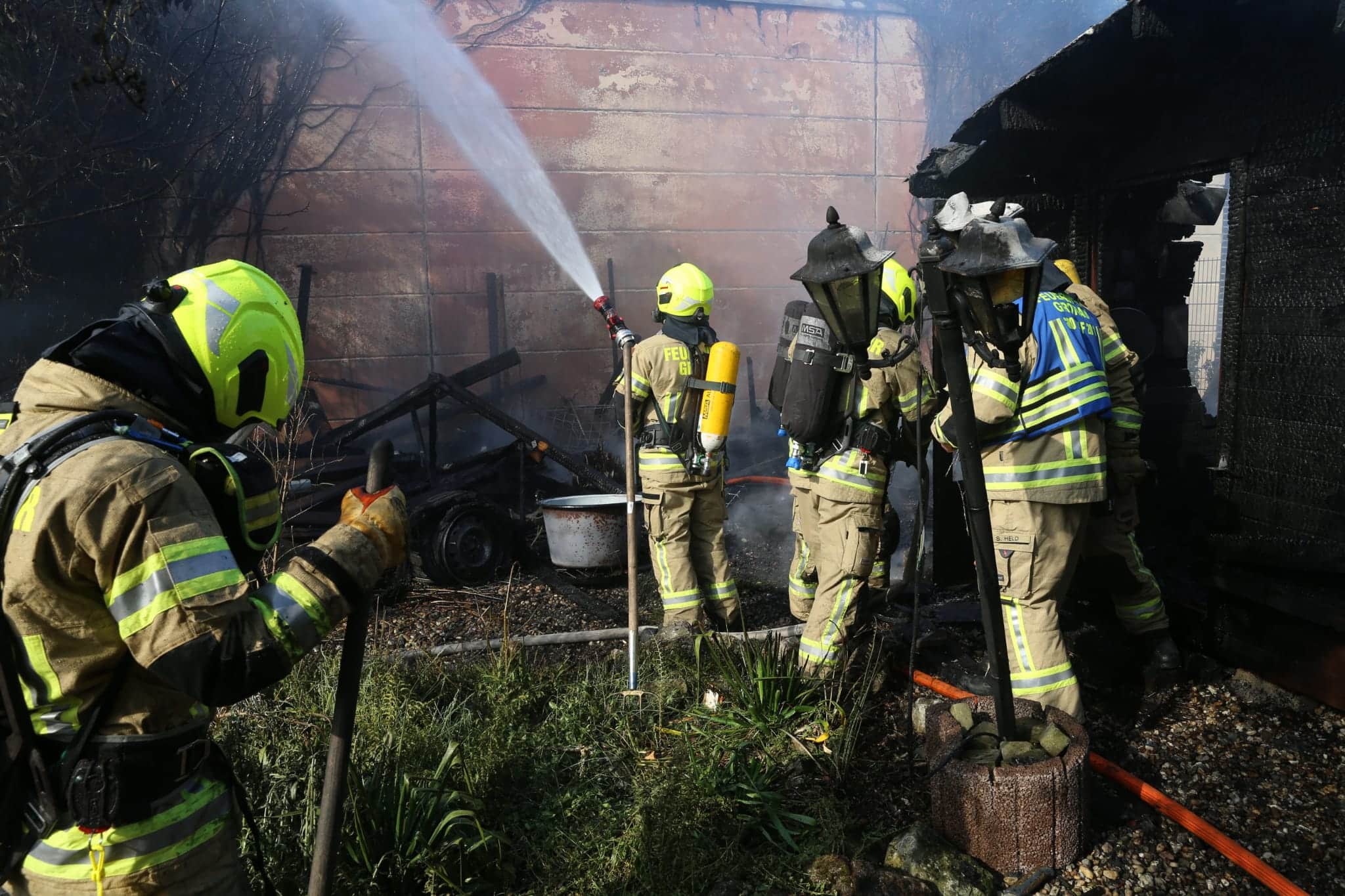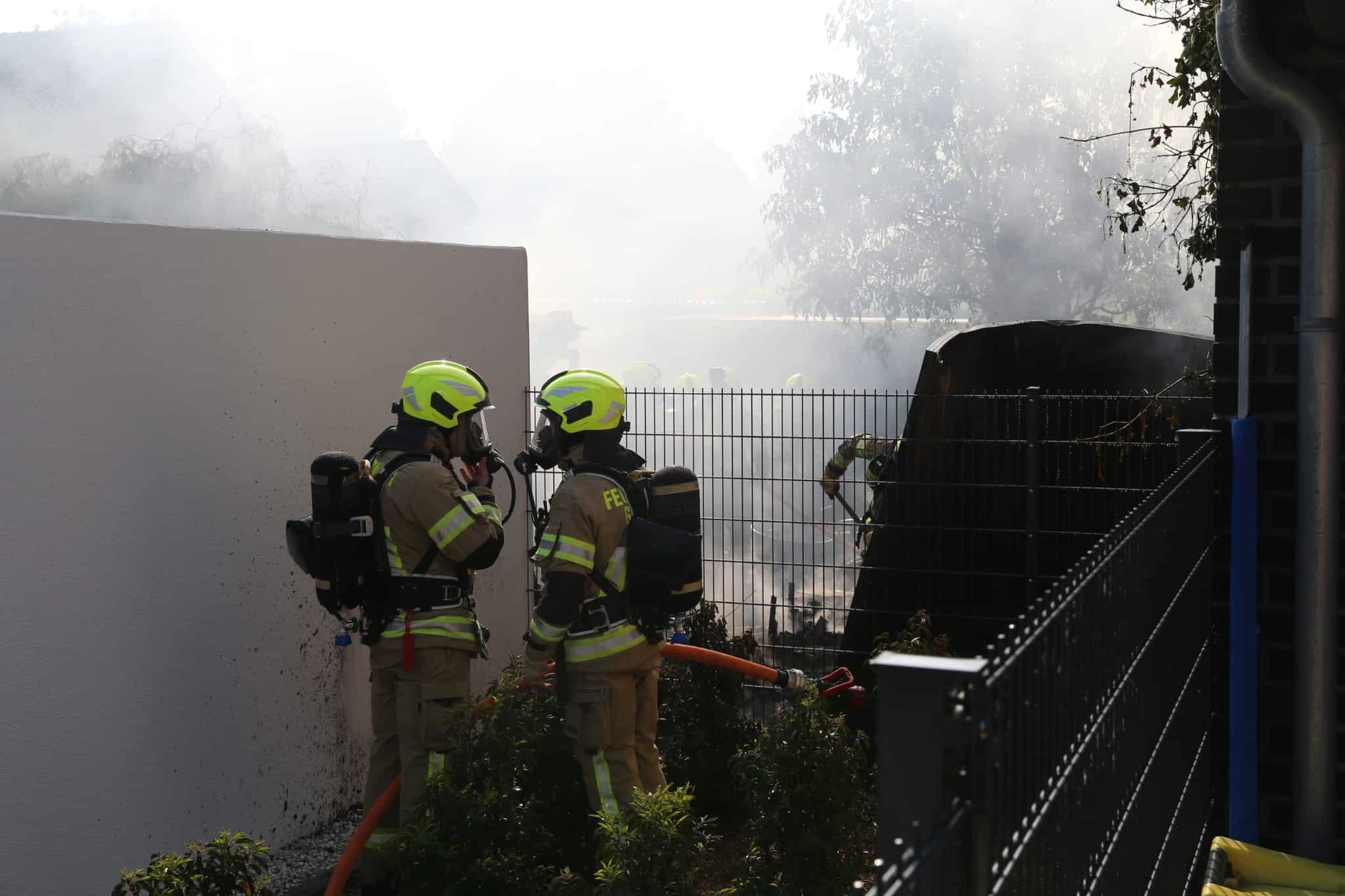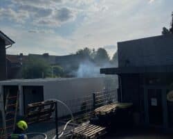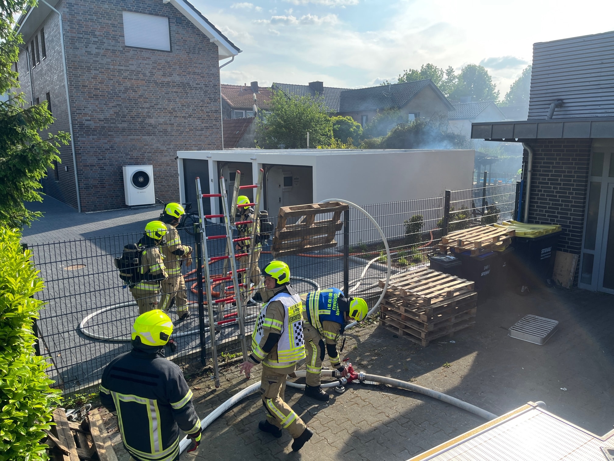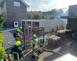 Ein übergreifen auf die angrenzenden Garagen konnte verhindert werden. Die Gartenhütte wurde abgelöscht und die Einsatzstelle mit der Wärmebildkamera kontrolliert.