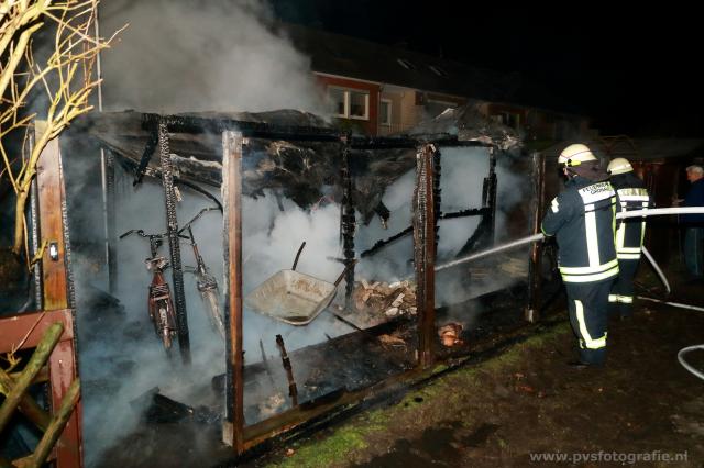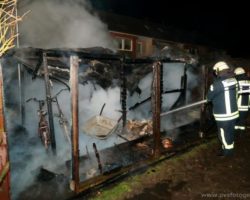 Eine Gartenlaube von 8 x 4 Meter brannte bei Eintreffen der Feuerwehr in voller Ausdehnung.