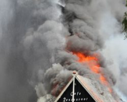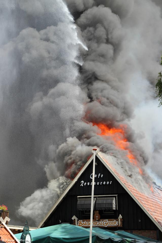 Gegen 12:15 ist die Feuerwehr Gronau zu einem Großbrand ins benachbarte Overdinkel gerufen worden. Dort brannte bereits in voller Ausdehnung die Gaststätte Saksenstaal Gerrit. Von der Feuerwehr Gronau konnte ein Übergreifen auf benachbarte Wohngebäude verhindert werden. Ebenfalls ein Raub der Flammen wurde das Schmugglermuseum. Die Feuerwehr Gronau konnte gegen 15:45 Uhr den Heimweg antreten.