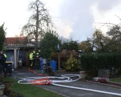 Gewöhnlich ist ein Heckenbrand in kurzer Zeit gelöscht. Wenn aber andere Gegenstände mit in Brand geraten, wird aus einem kleinen Einsatz ein größerer.