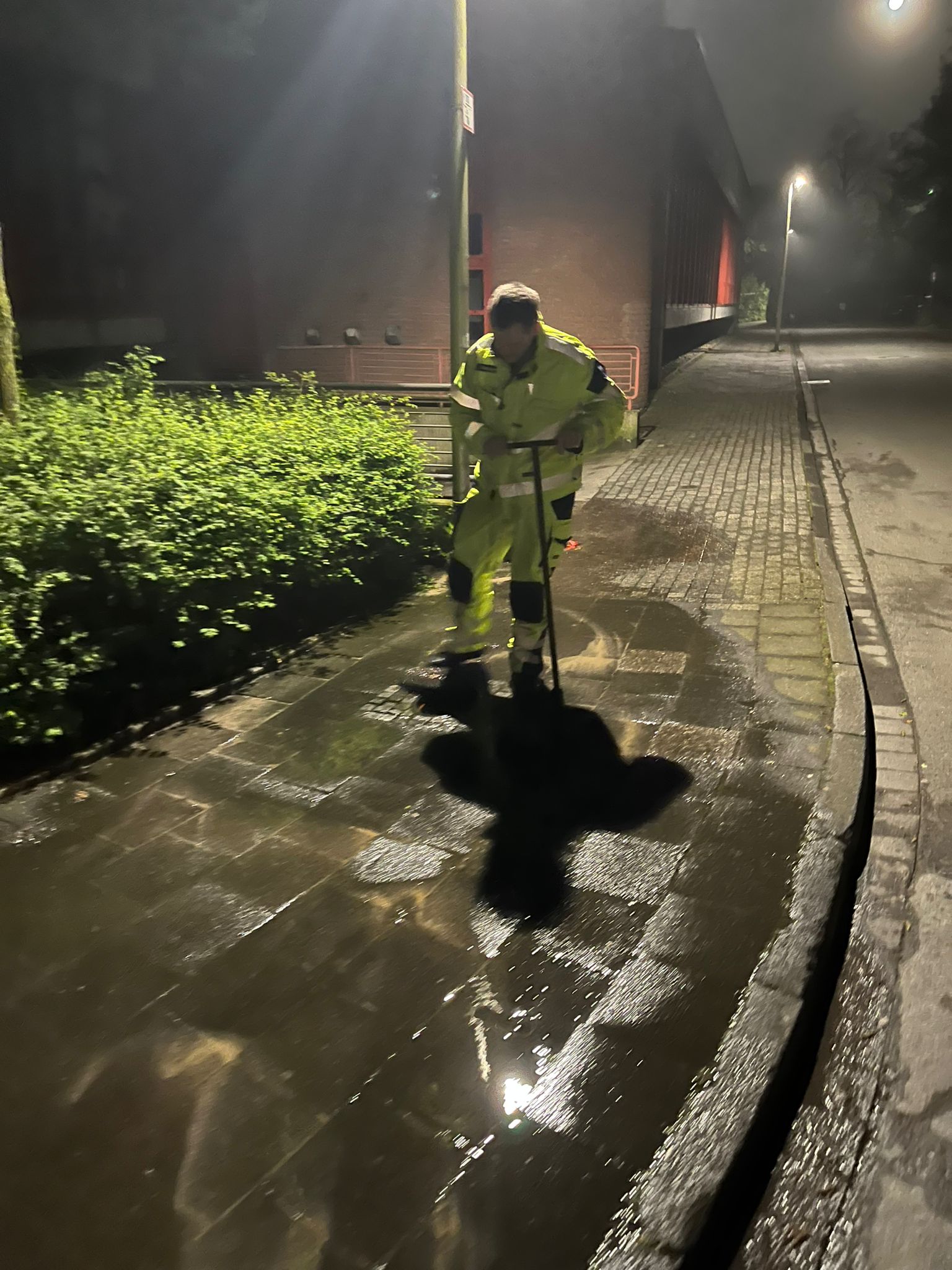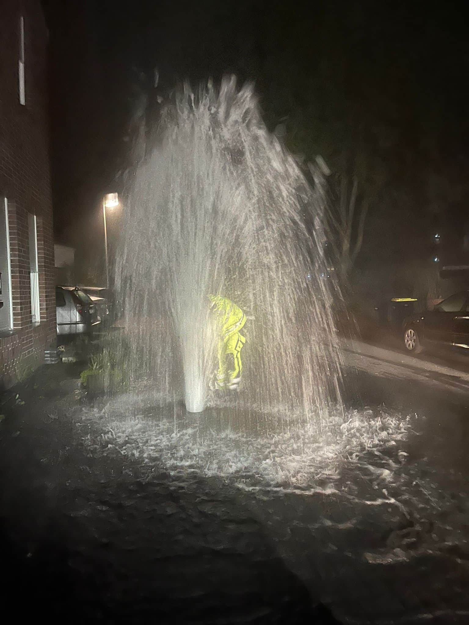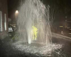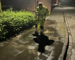 Gegen 3:30 Uhr nachts rückte ein Fahrzeug zu einer weiteren technischen Hilfeleistung aus. Ein Unbekannter hatte in der Gronauer Innenstadt mehrere Hydranten geöffnet. Das Wasser stand zum Teil in meterhohen Fontänen auf der Straße. Die Feuerwehr Gronau schloss die Hydranten und beseitigte so die Gefahrenstellen. Das Wasser floss durch die Regenabflüsse nach und nach ab.