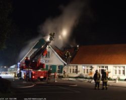 Gegen 02:20 Uhr wurde die Feuerwehr Gronau zu einem Brand an der Alstätter Straße gerufen. Hier sollte ein Zelt nahe einem Wohnhaus brennen. Bei Eintreffen stellte sich heraus, daß bei der Gaststätte Dinkelhof der Dachstuhl in voller Ausdehnung brannte. Daraufhin wurde für die Feuerwehr Gronau "Feuer 4" ausgelöst. Durch Einsatz von mehreren C-Rohren teils unter PA im Innen- sowie im Aussenangriff konnte der Brand gelöscht werden. Über das Wenderohr der DLK 23/12 sowie dem Gelenkmast der FF Ochtrup wurde ein Übergreifen der Flammen auf den angrenzenden Saal sowie das Wohngebäude verhindert. Sachschaden und Brandursache stehen z.Zt. noch nicht fest.
